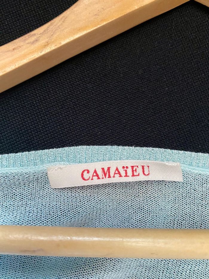 Pull en V vert brillant  camaïeu taille 2 - photo numéro 4