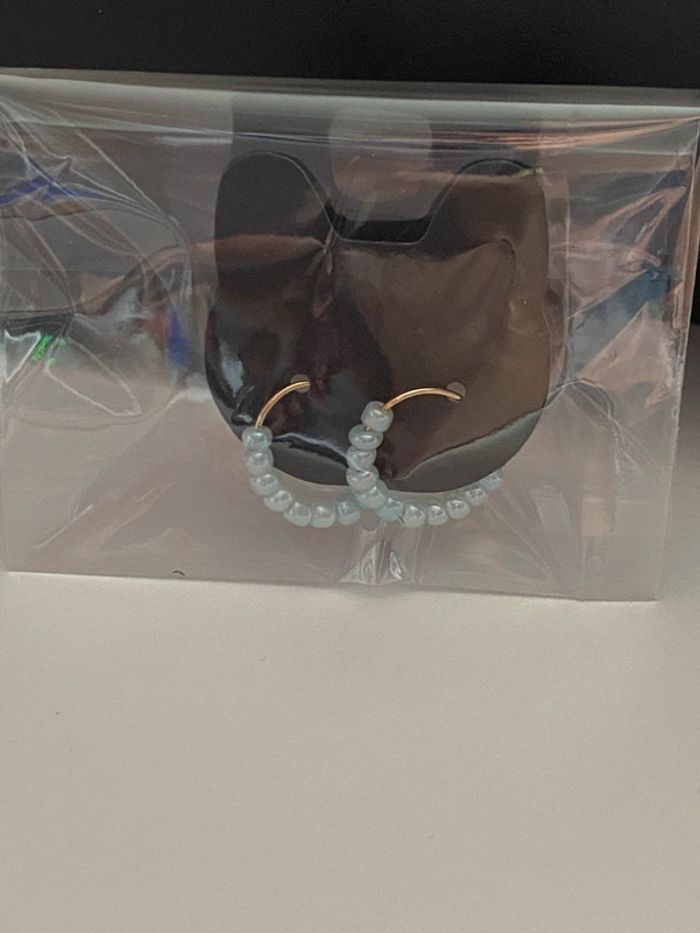 Idée cadeau Noël - Créoles avec petites perles bleu clair - photo numéro 2