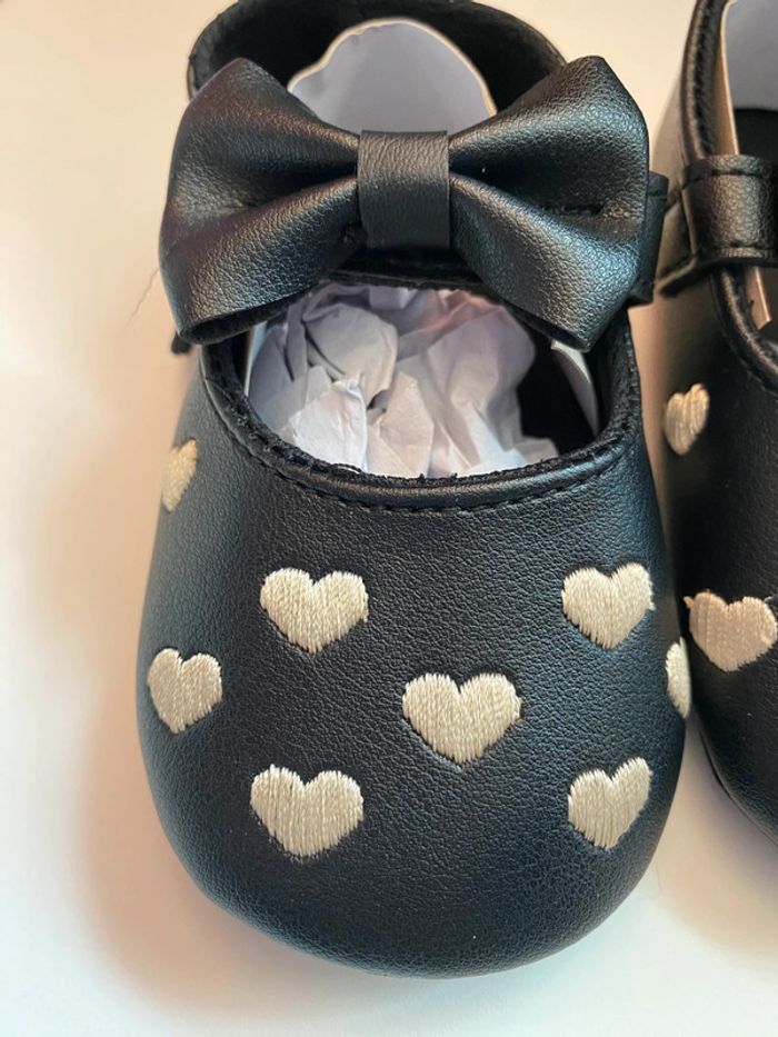 Ballerines pour bébé noir et beige avec coeur et petit noeud - photo numéro 2