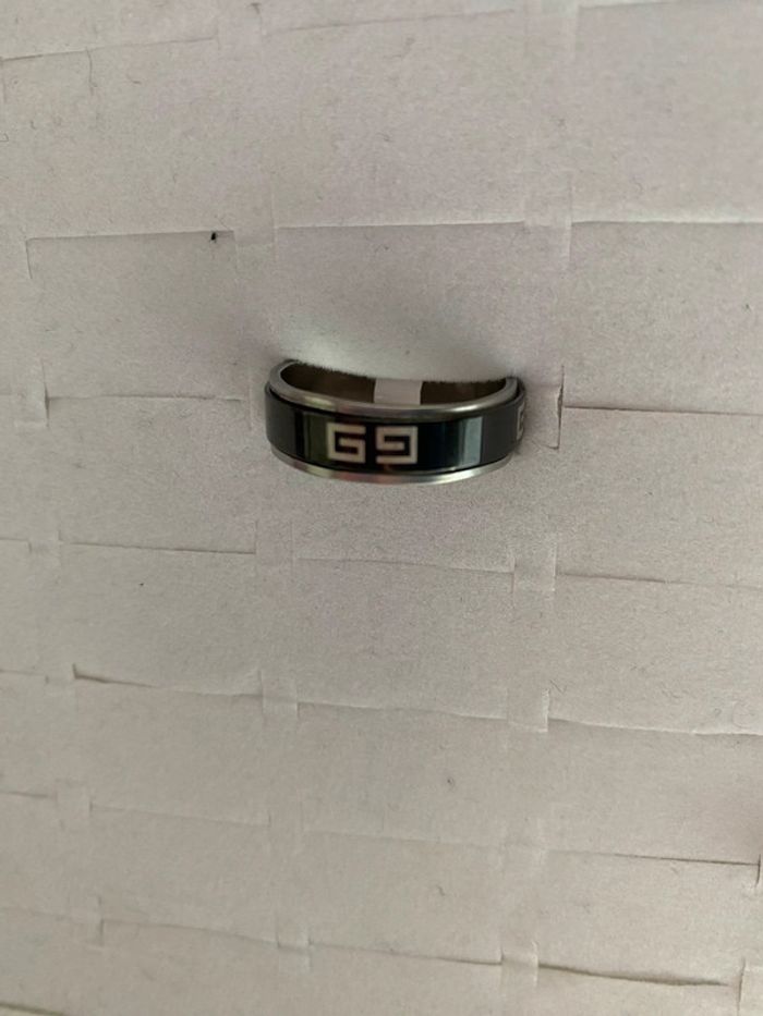 Idée cadeau Noël - très jolie bague argentée et noir clé grecque - photo numéro 4