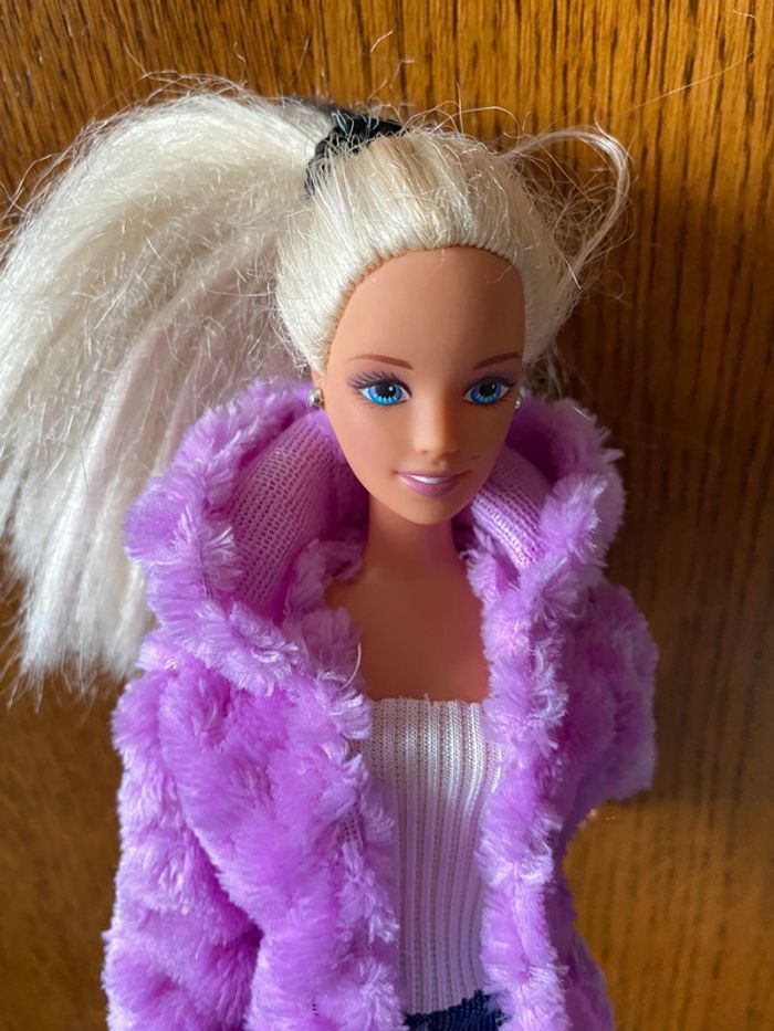 Barbie avec ensemble haut pantalon et veste fourrure - photo numéro 2