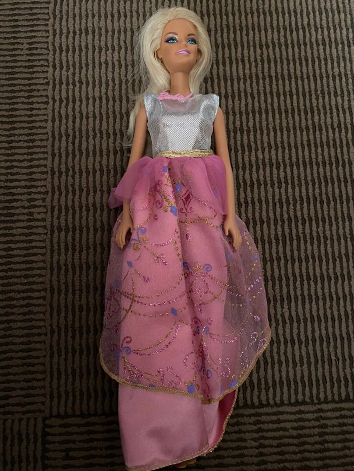 Barbie avec robe jupe brillant et collier barbie - photo numéro 1