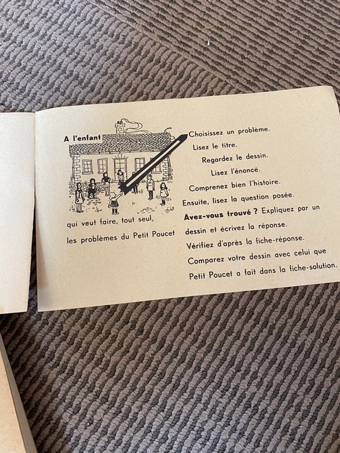 Livre des années 60 Expliquer les mathématiques de façon ludiques aux enfants Quelques pages dessinées ou annotées 4 premières pages détachées Les 100 problèmes du Petit Poucet https://amzn.eu/d/gFpHkaL