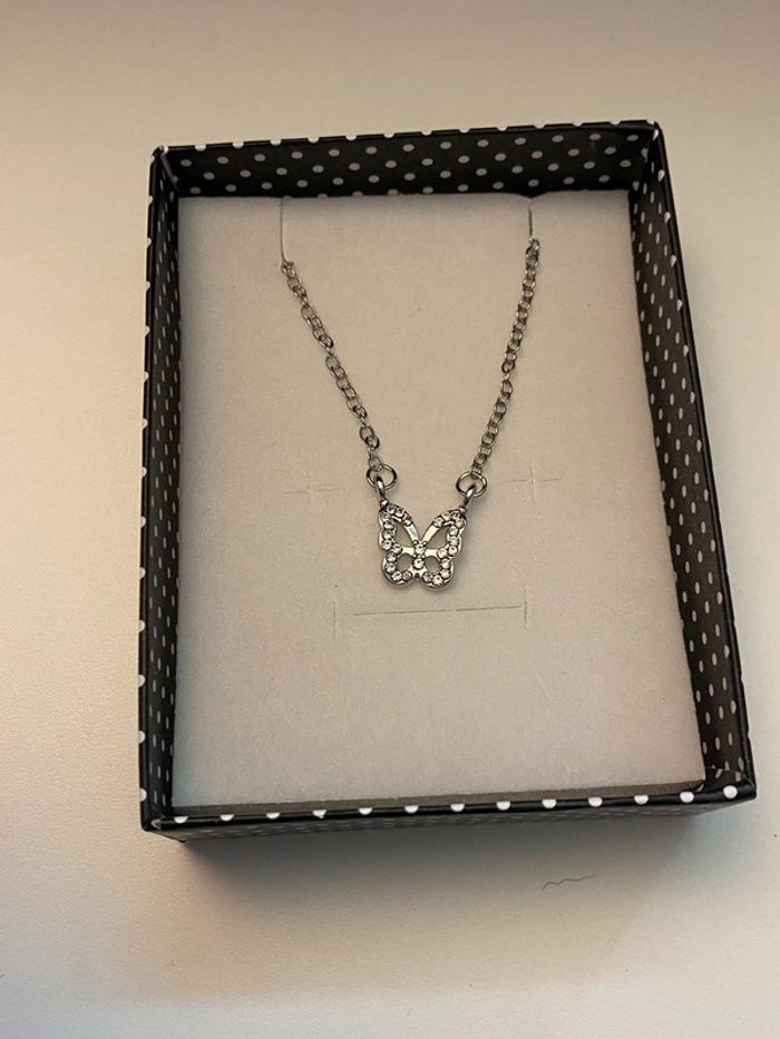 Collier argenté pendentif papillon avec brillant - photo numéro 2
