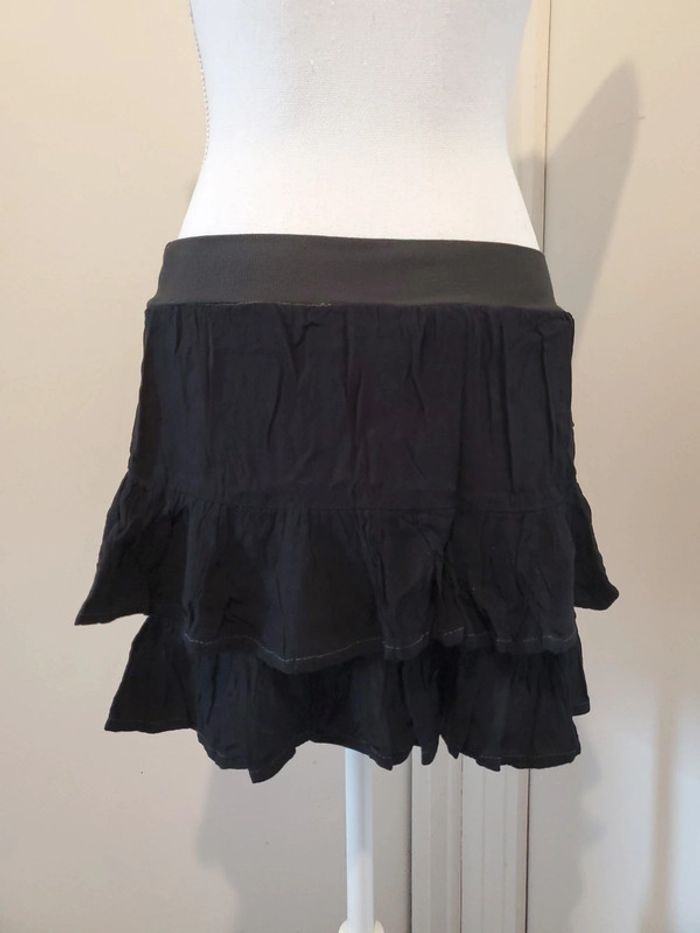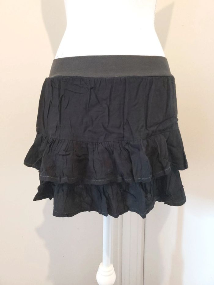 Mini jupe à volants, mesure environ 35 cm, Noire/Kaki, 100% viscose T.U (convient pour un S~M) / COLINE / Femme Très bon état. #boulie2318tailleU / #jupesboulie2318