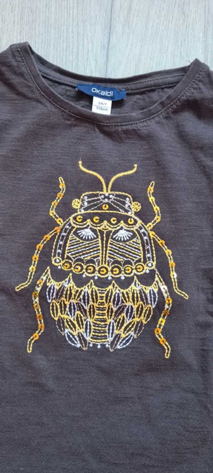 T-shirt manches courtes Motif scarabée Marque Okaïdi Taille 5 ans En très bon état