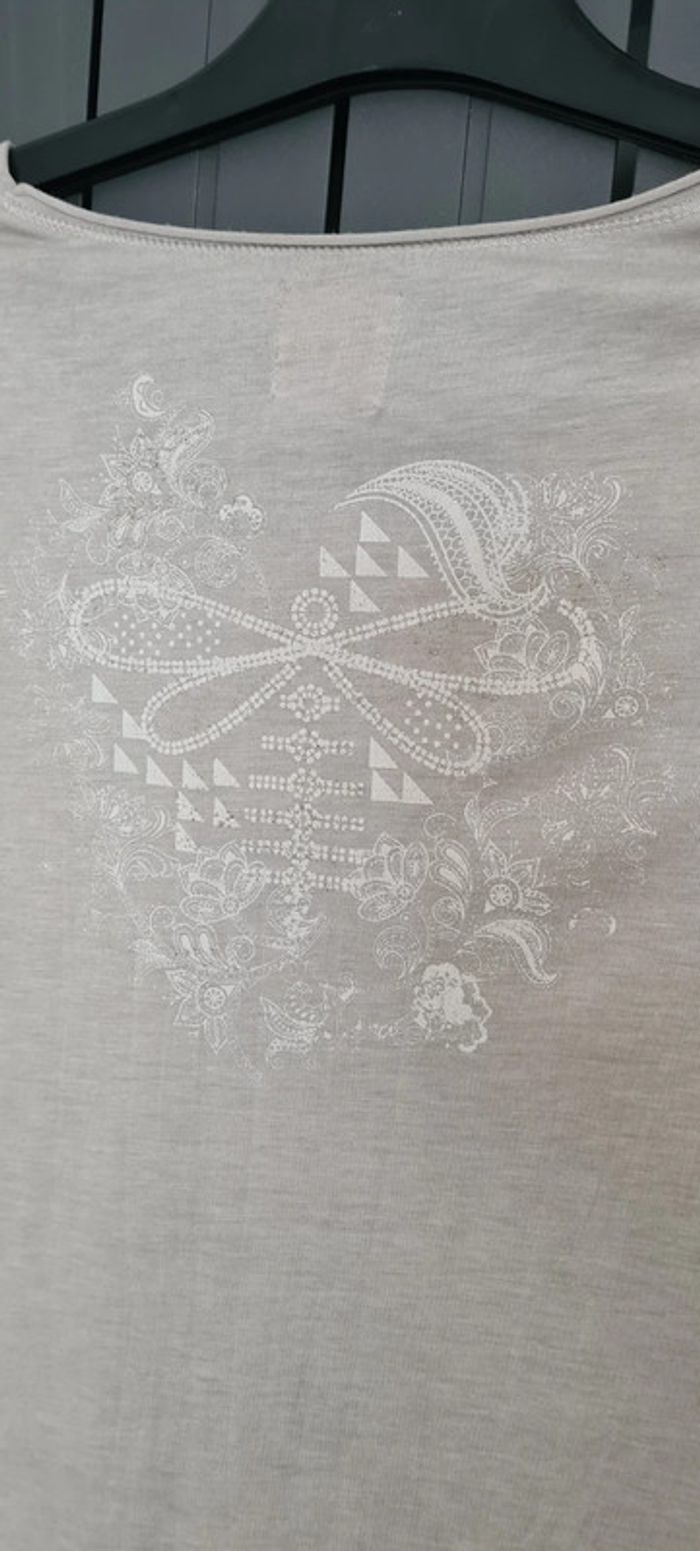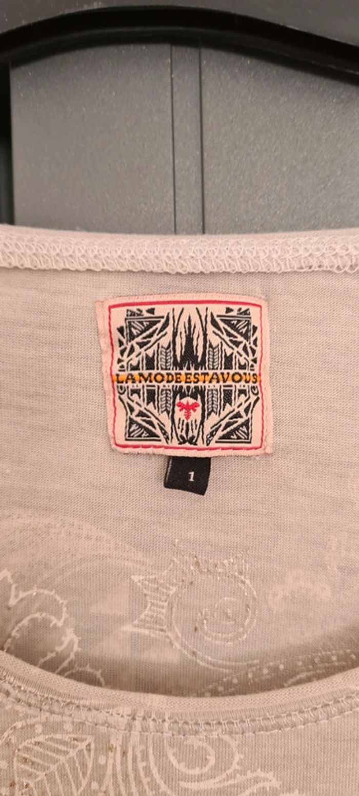 T-shirt manches courtes Paillettes dorées sur les motifs (ça ne ressort pas sur les photos) Marque la Mode est à Vous LMV Taille 1 (correspond à un 36) Peu porté, en très bon état