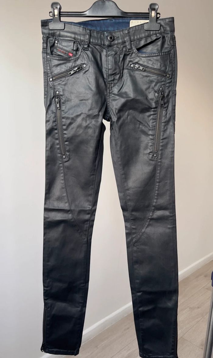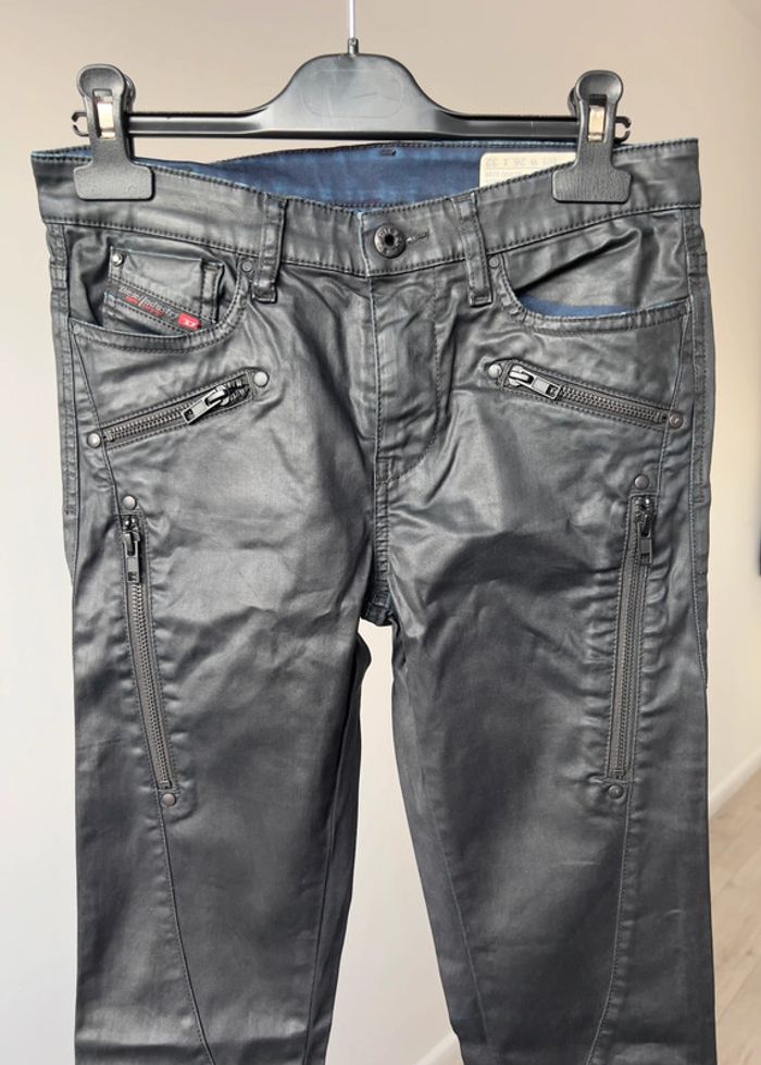 Jeans Diesel skinny taille 36 stretch noir effet cuir de vache à zip Neuf jamais porter Taille 72cm, longueur 99cm Valeur 350e