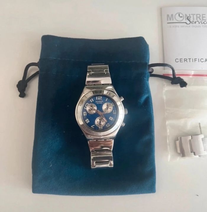 Montre swatch Irony chrono petit cadran bleu très bon état + 2 maillons