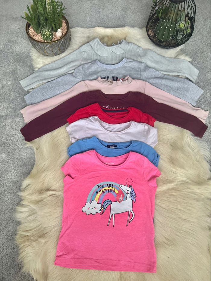Lot fille 3ans comprend 1 pull gris Zara 2/3ans très bon état 1 sweat gris primark tbe 1 manche longue Zara rose tbe 1 manches longue primark bordeaux tbe 3 manches courte primark rouge, rose pale et rose avec licorne 1 manches courte bleu okaidi tbe Très bon état #meeriah_taille3ans