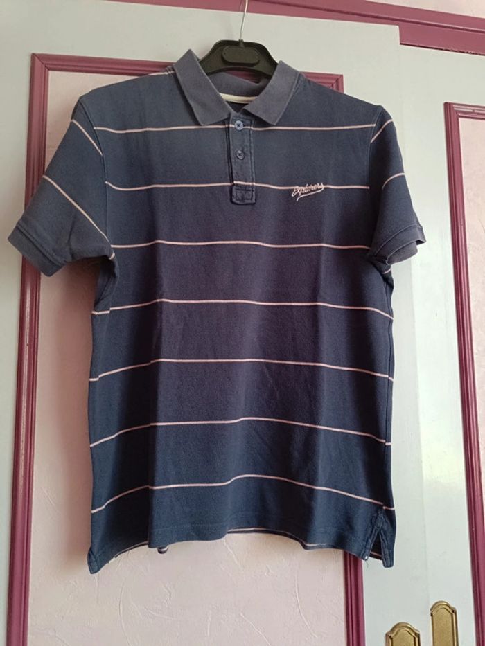 Polo violet/ bleu rayé rose T.L - photo numéro 10