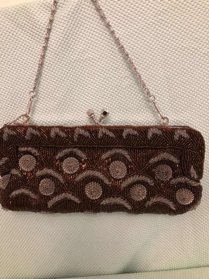 Superbe pochette en perles brodées, parfaite pour des soirées élégantes. Design unique avec une chaîne métallique. Neuve