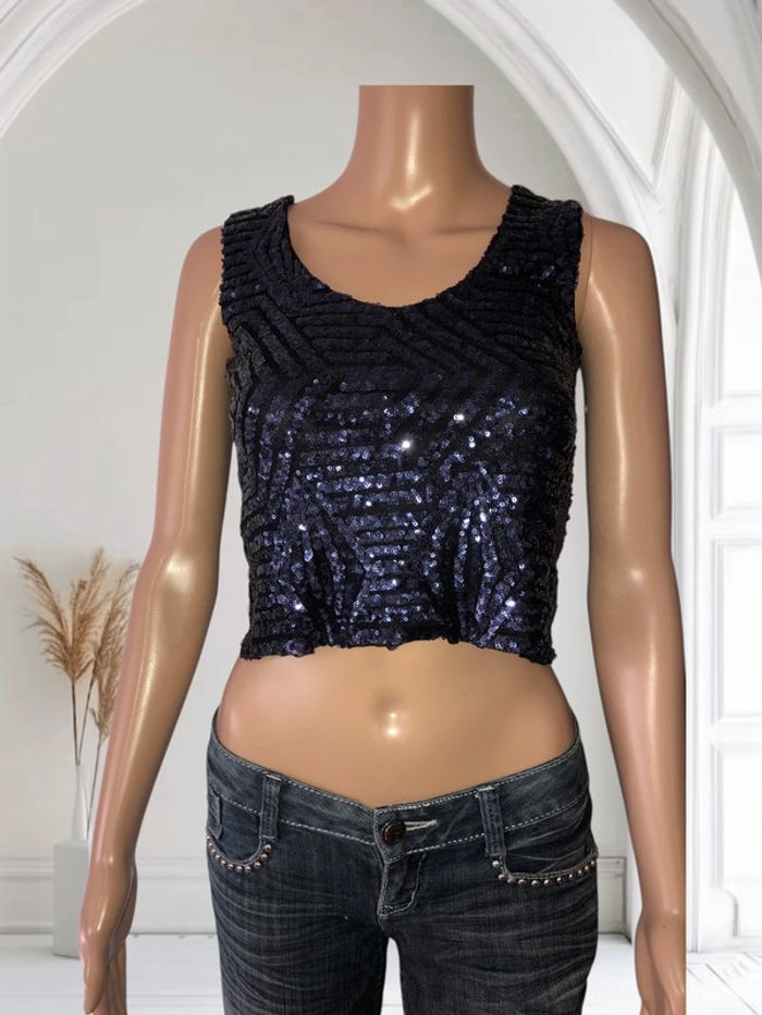 Top sans manches à paillettes, parfait pour une soirée ou un événement spécial. Style chic et moderne.