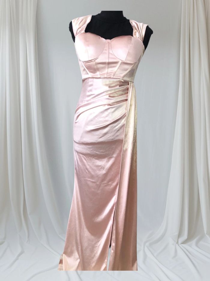 Robe longue rose élégante, Bustier sous forme de corset Fendue Déjà portée