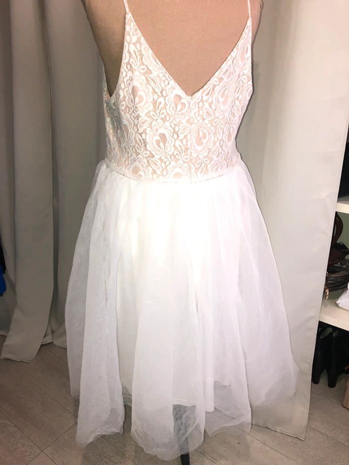 Superbe robe en dentelle blanche avec un design élégant, parfaite pour les occasions spéciales. Confortable et stylée.