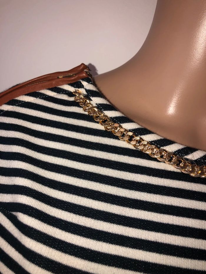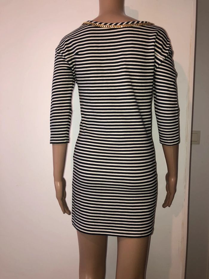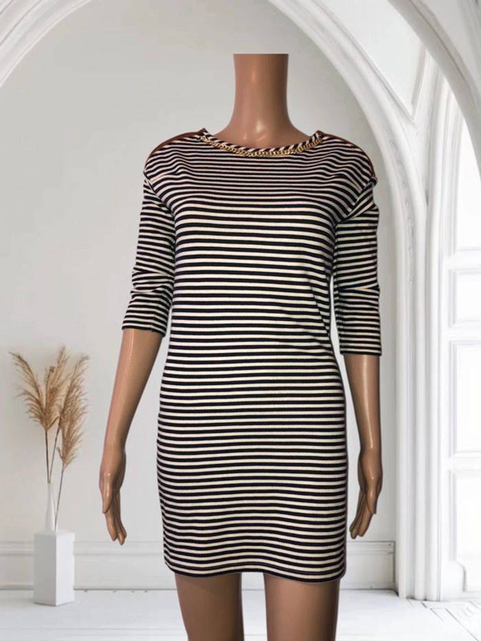 Robe à rayures noire et blanche Maje Ornement chaîne bijou sur l’encolure Parfaite pour toutes occasions.