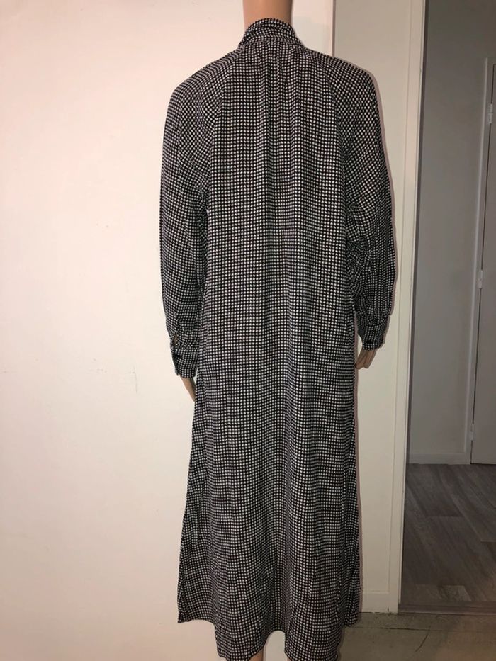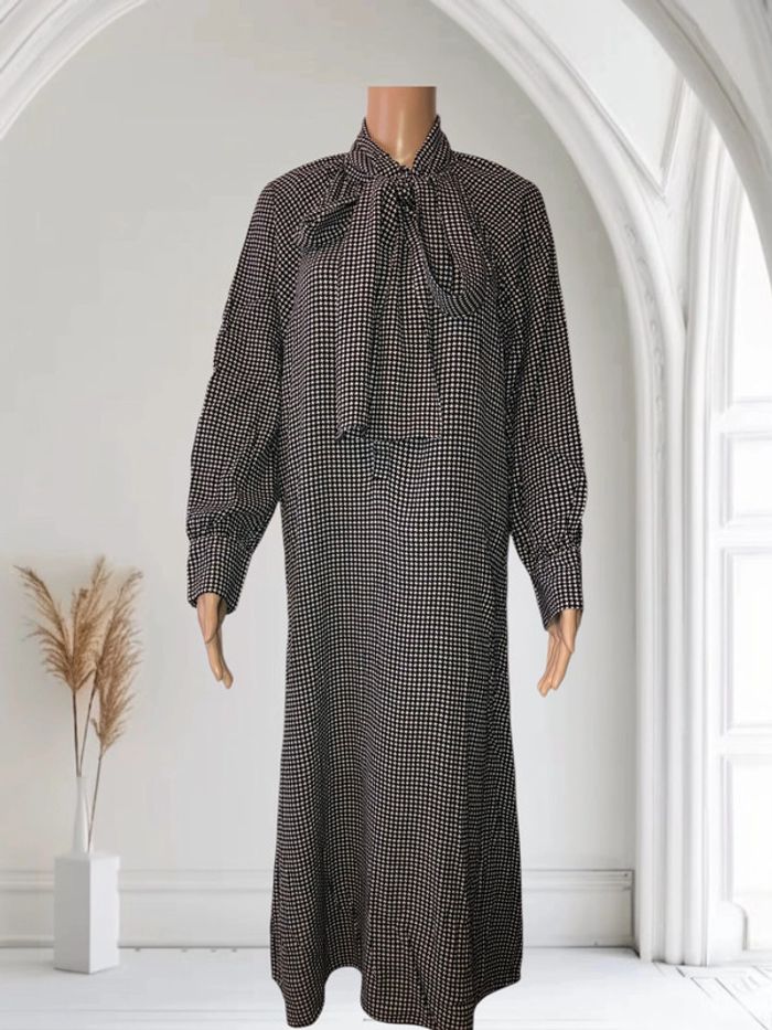 Robe longue à carreaux classique et élégante avec nœud au col. Parfaite pour toutes les occasions.