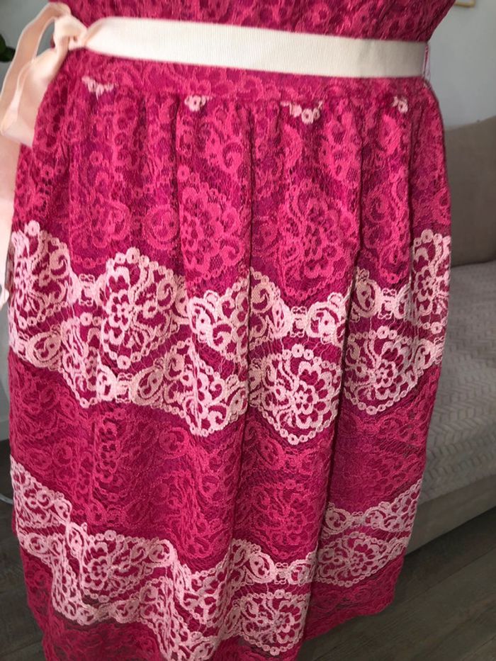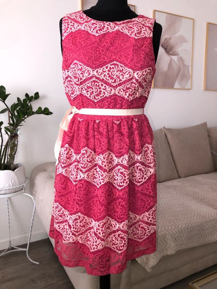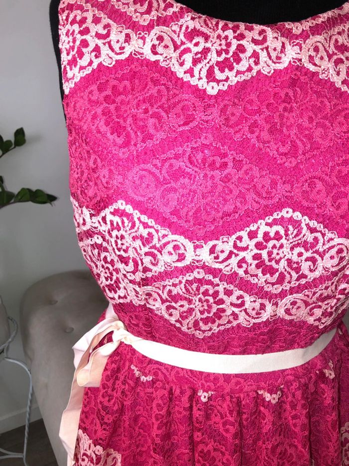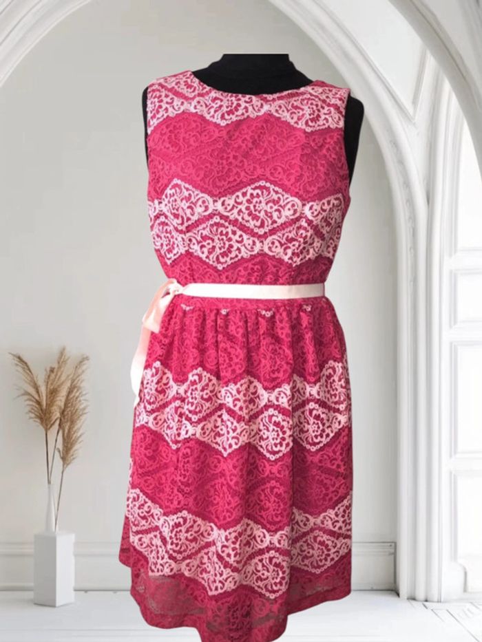 Magnifique robe dentelle rose avec motifs délicats, parfait pour toutes occasions. #mecale59robesdecocktail