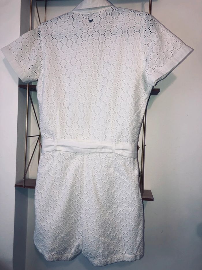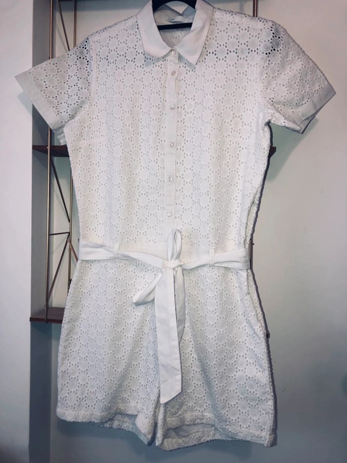 Adorable Combishort courte en dentelle blanche avec ceinture intégrée. Parfaite pour l'été ! Entièrement doublée