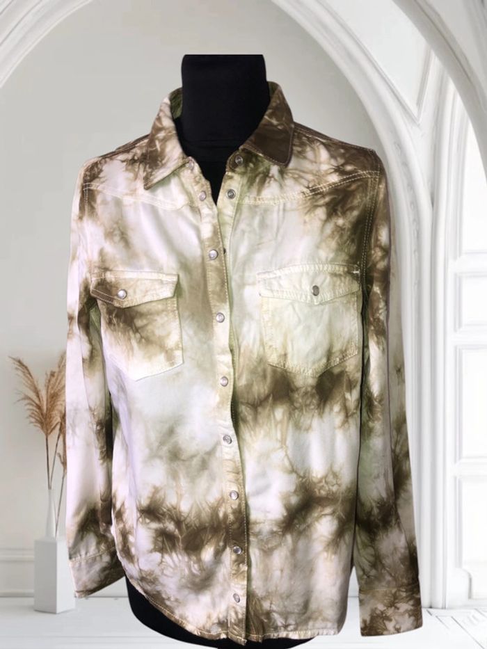 Chemise à manches longues avec motif tie-dye unique. Très confortable et élégante, parfaite pour ajouter une touche originale à votre tenue.