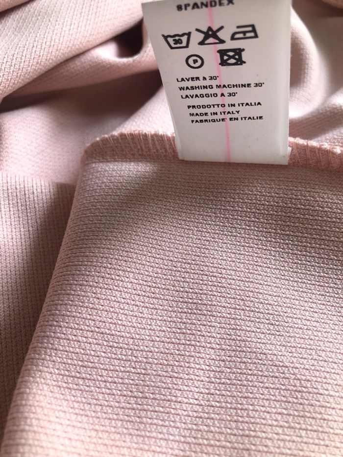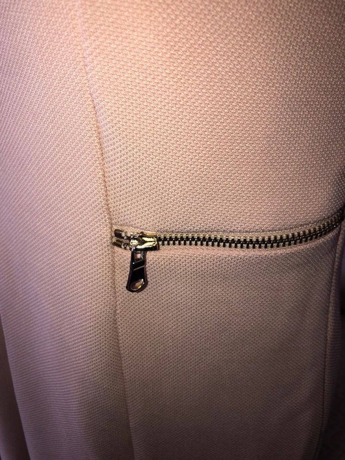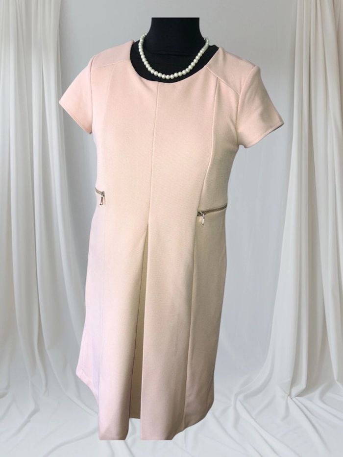 Jolie robe rose pâle avec col contrasté et poches zippées.