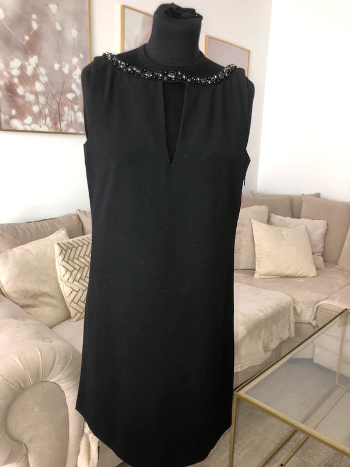 Superbe robe noire avec empiècement perlé devant et derrière