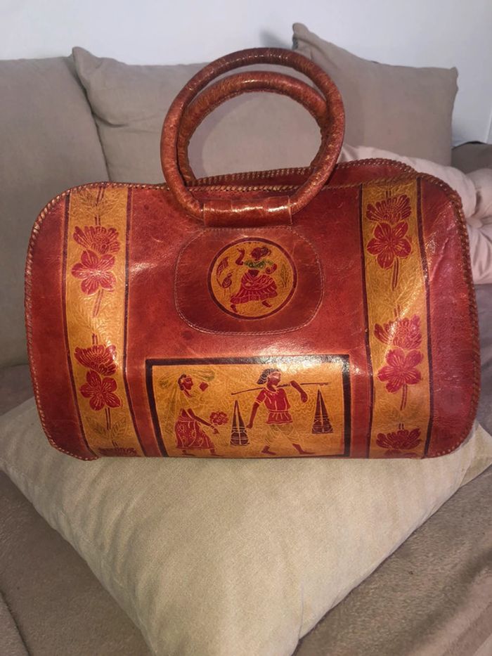 Superbe sac motifs ethniques en cuir