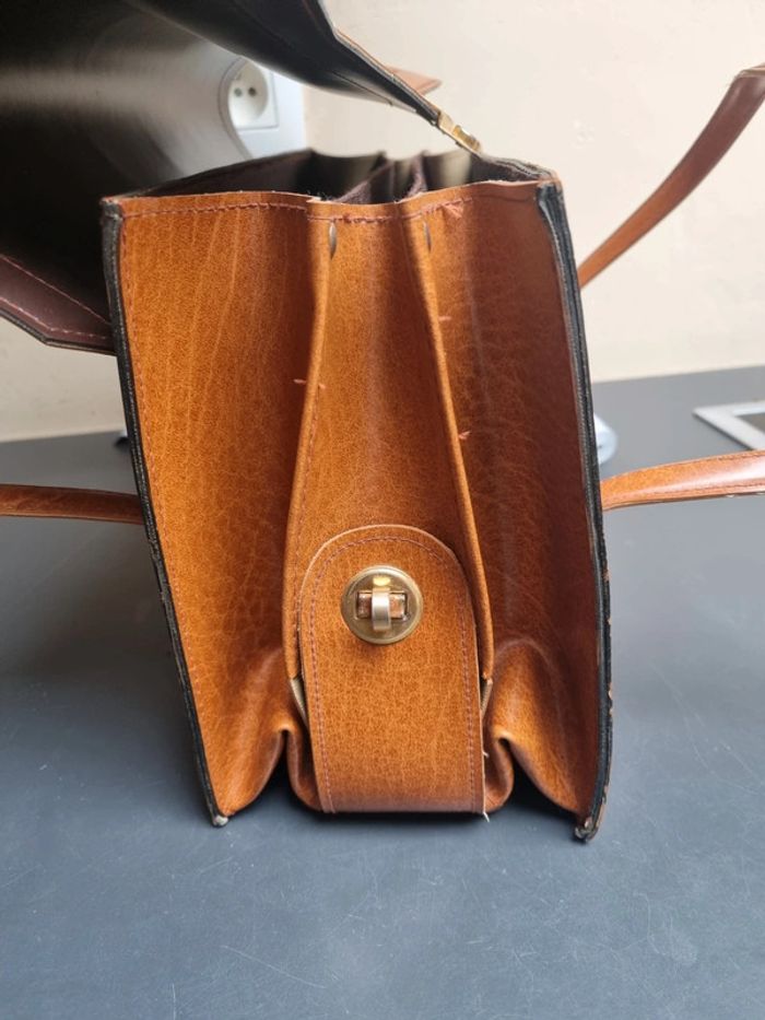 Sac vintage marron, 3 poches centrales - photo numéro 4