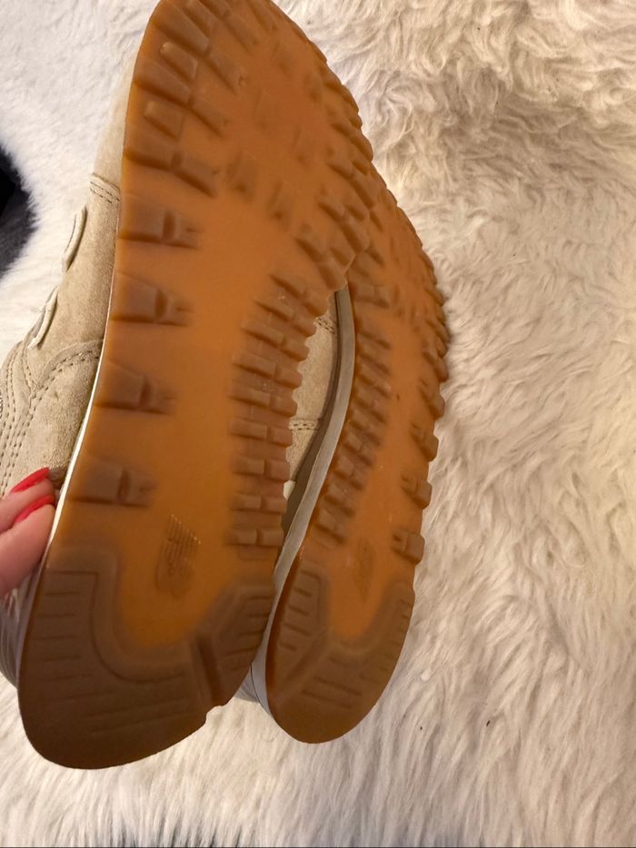 Baskets New Balance pour femme, modèle WL574BCA, en très bon état. Coloris beige avec des détails rose pâle. Confortables et stylées, elles s’adaptent aussi bien à un look décontracté qu’à une tenue sportive. Caractéristiques : • Pointure : 38 • Modèle : WL574BCA • Couleur : Beige avec touches de rose • Semelle extérieure en gomme • Empeigne en cuir suédé et mesh • Logo “N” emblématique sur les côtés • Très bon maintien et confort État : Très bon état (quelques traces d’usures) Replongez dans les années 70 avec la New Balance. Ces baskets pour femmes s'inspirent des chaussures de sport des années 70 pour donner une touche vintage à vos tenues préférées. L'amorti en EVA dans la semelle intermédiaire et le talon, associé à une semelle extérieure en caoutchouc résistant, offre confort et traction dans toutes vos activités quotidiennes