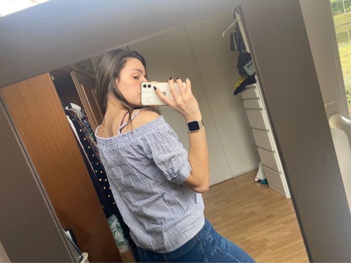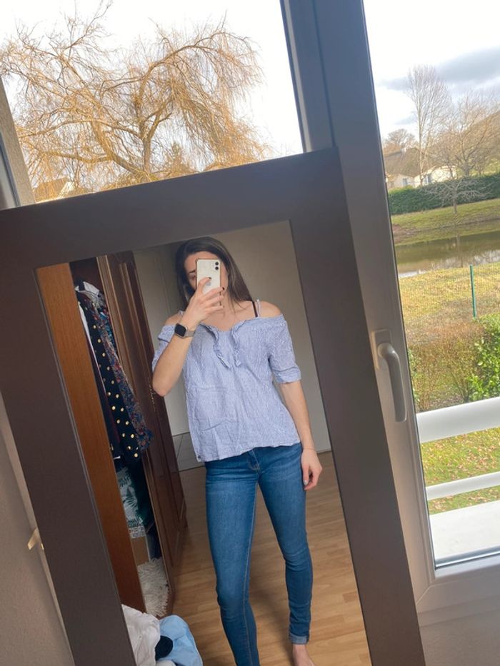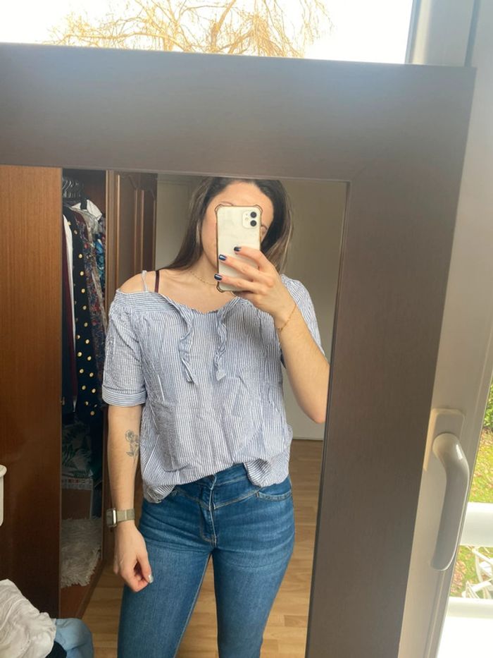 Top épaule dénudés Couleur blanc et rayer bleu Marque Kaporal Taille s Neuf sans étiquette