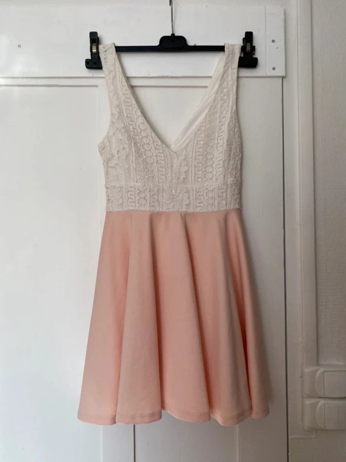 Robe bicolore femme Rose et blanche courte avec effet dentelle sur le haut Taille 34 Très bon état tallyweijl Réductions actives sur les lots #robefemme #tallyweijl #taille34 #dentelle