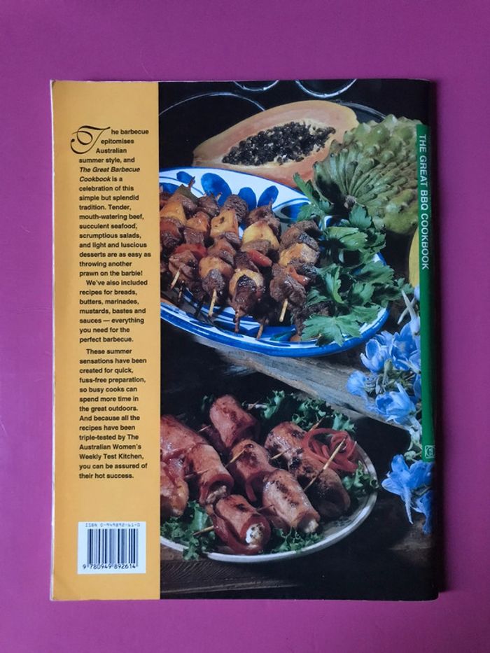 Livre de recettes pour barbecue (en anglais). Il y a de tout, des amuse-bouche, des soupes, des recettes à base de fruits de mer, de poisson, de volaille, d’agneau, de bœuf, de porc, de veau, des salades, des accompagnements à base de légumes, des pains, des beurres, des marinades, des moutardes, des sauces, et enfin, des desserts.