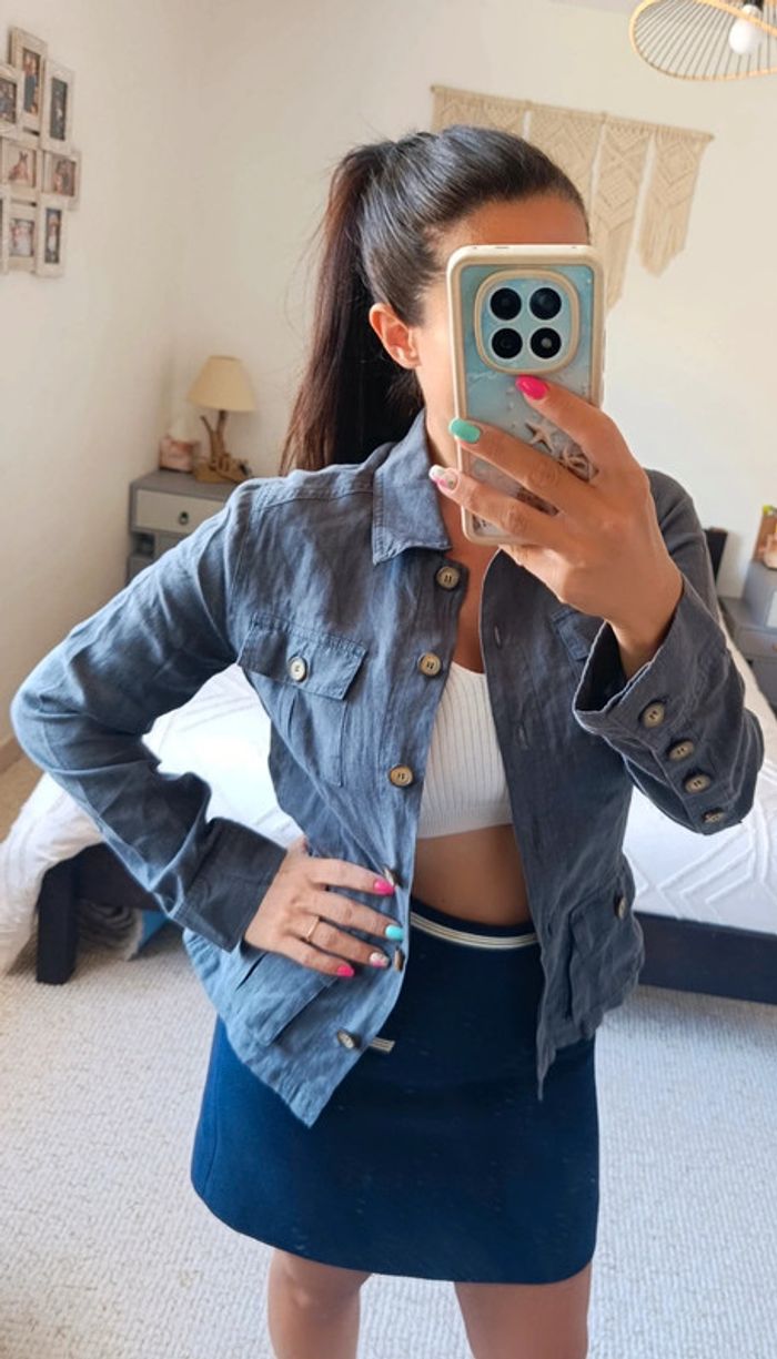 Veste chemise en lin gris foncé Caroll 42 100% lin - photo numéro 1