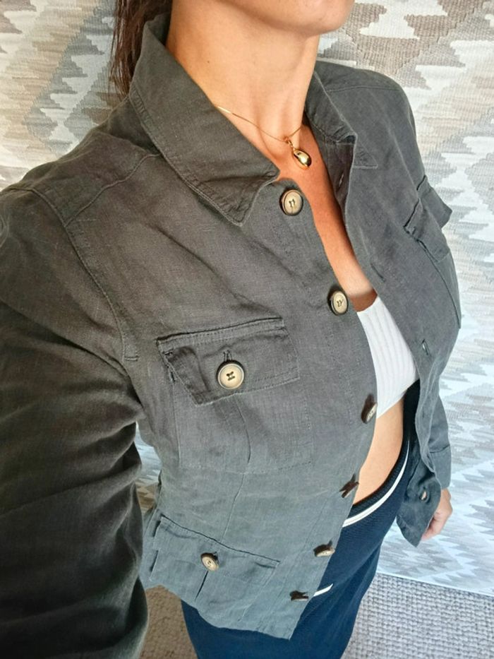 Veste chemise en lin gris foncé Caroll 42 100% lin - photo numéro 4