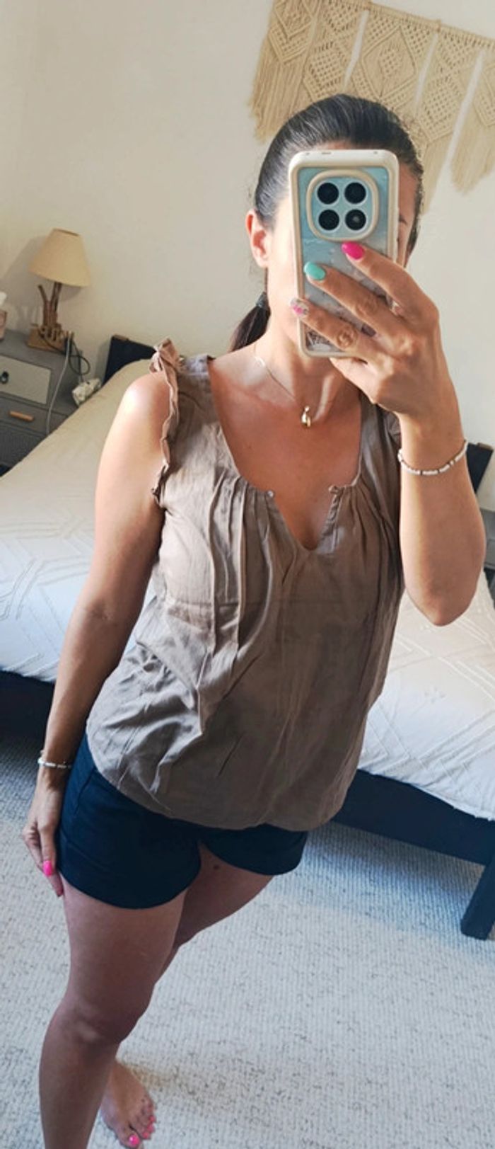 Top débardeur blouse léger Comptoir des cotonniers beige taupe 38 100% coton