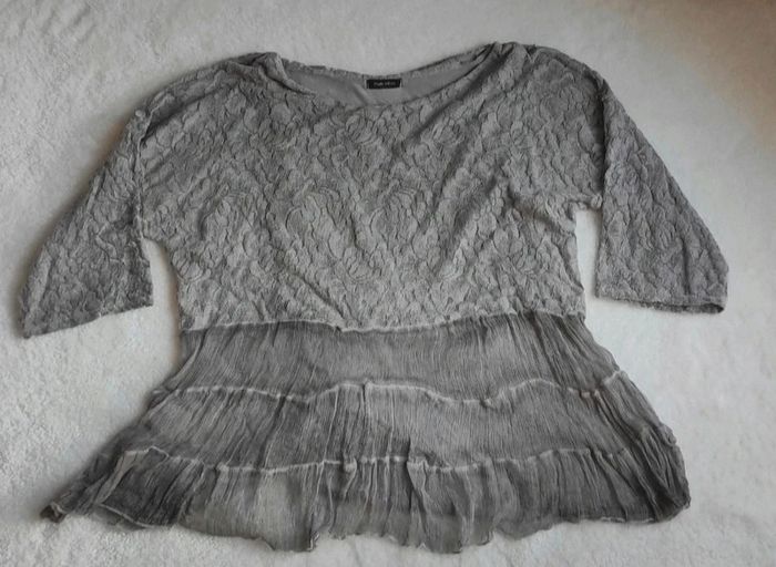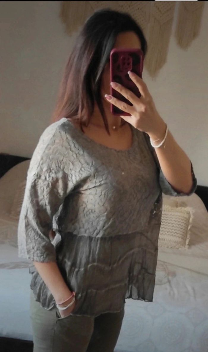 Top blouse bohème chic Made in Italy gris - photo numéro 1