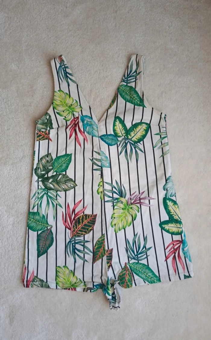 Combinaison short combishort Zara blanc rayures noir motif feuillage tropical multicolore M - photo numéro 4