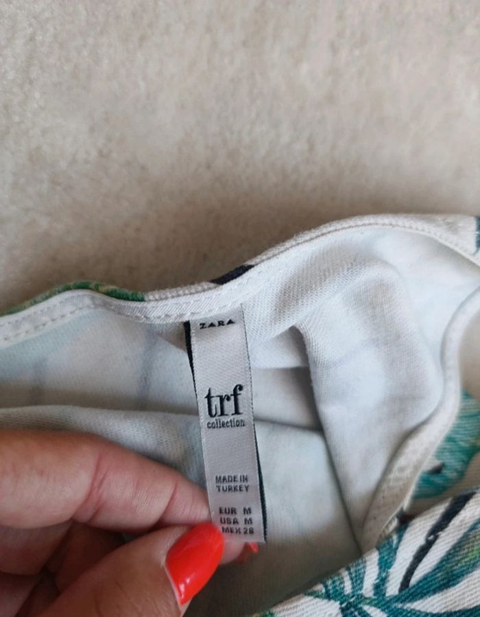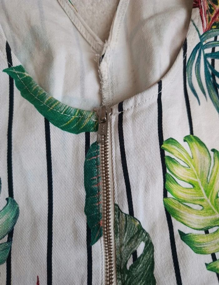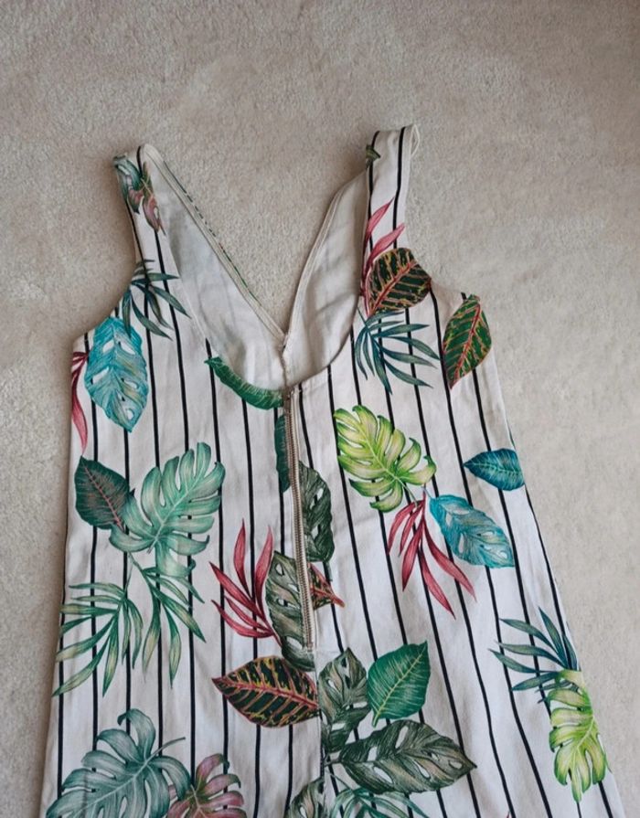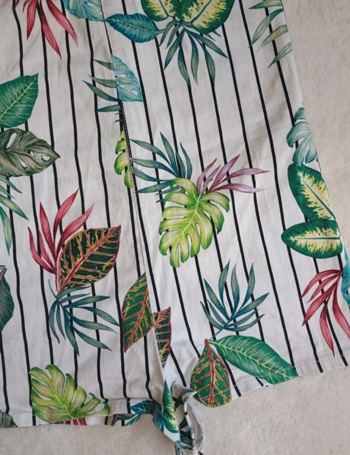 Combinaison short combishort Zara blanc rayures noir motif feuillage tropical multicolore M - photo numéro 7