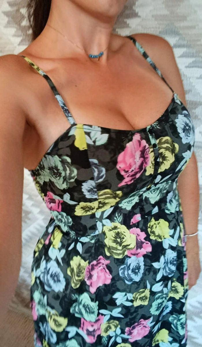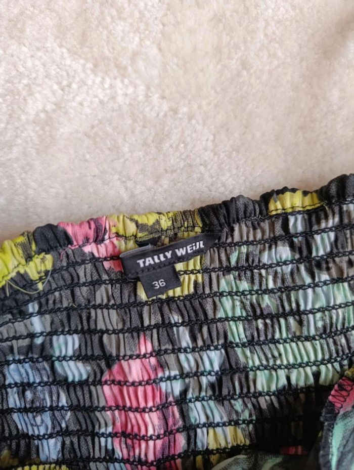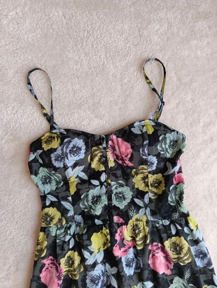 Petite robe Tally Weijl 36 noir avec des fleurs rose, bleu, jaune et vert