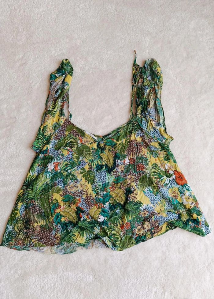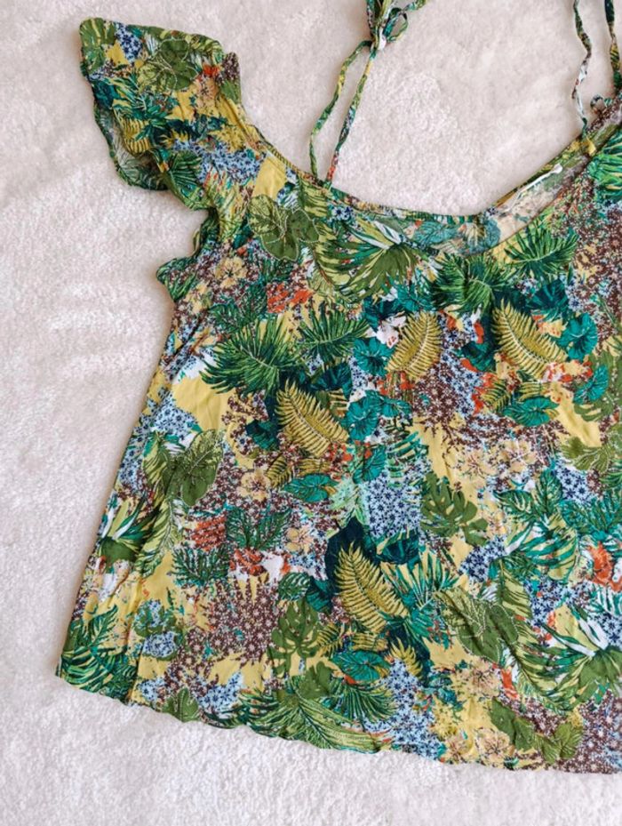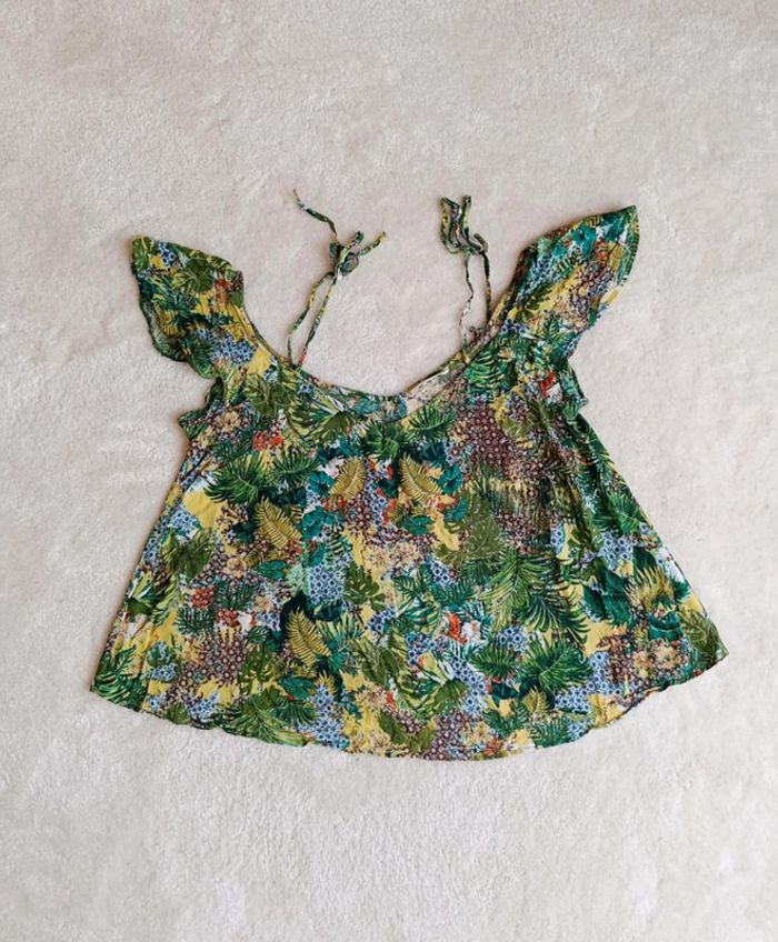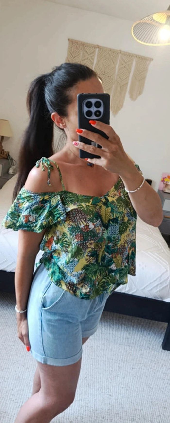 Top haut épaules dénudées Mango Casual M vert jaune tropical