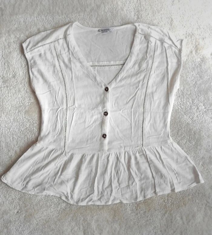 Top chemisier blouse peplum Bonobo S blanc crème