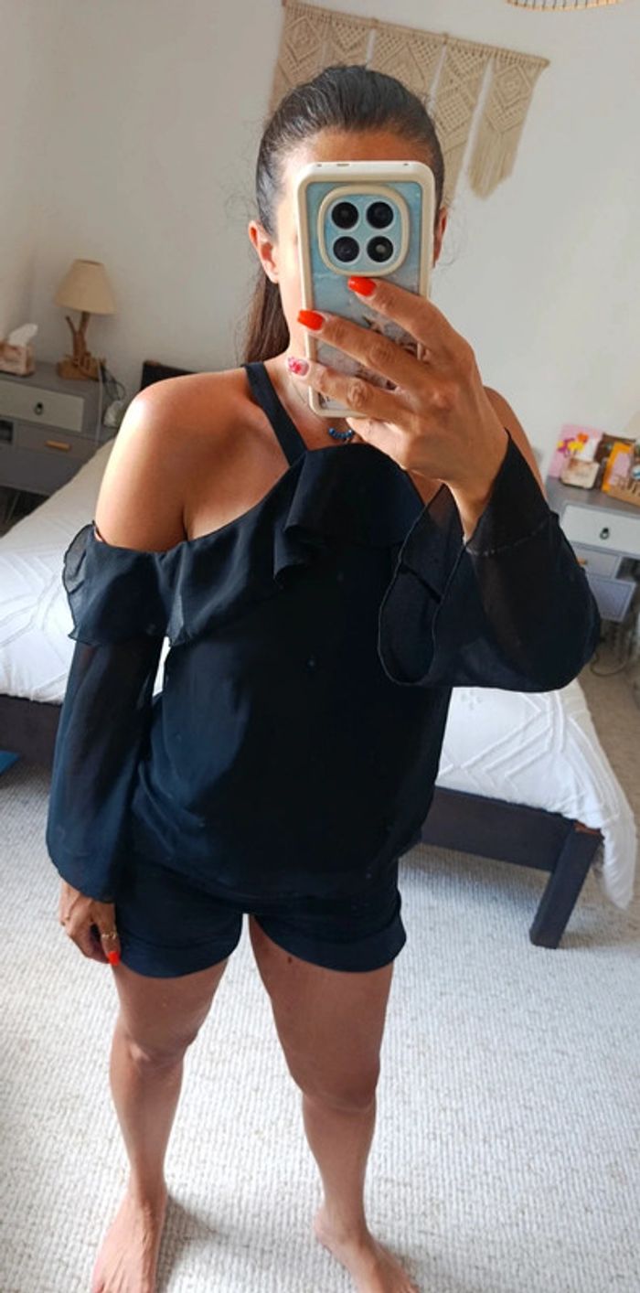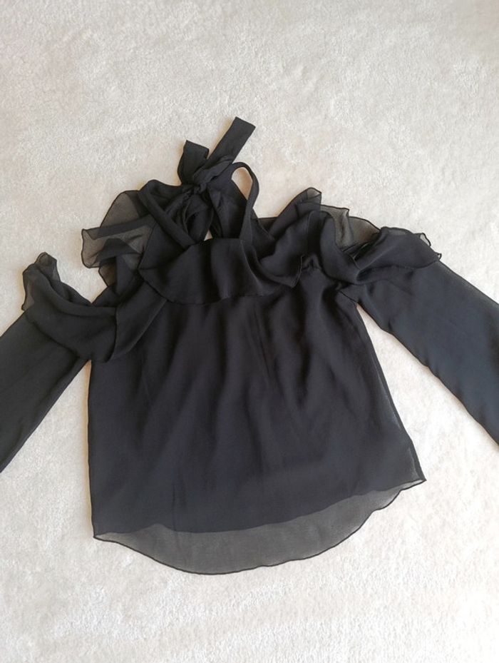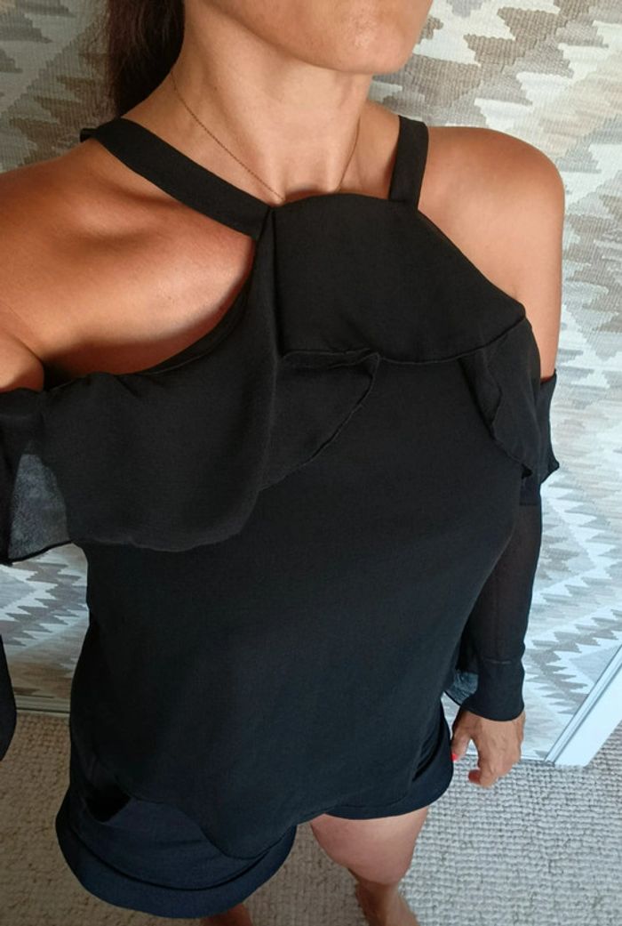 Haut fluide et léger en voile noir Mango S épaules dénudées se noue dans la nuque - photo numéro 1