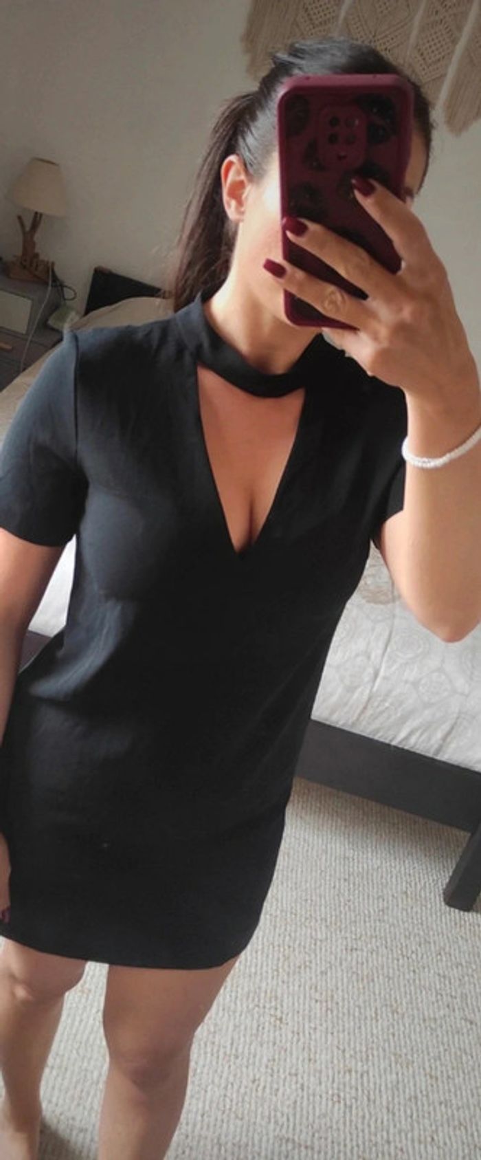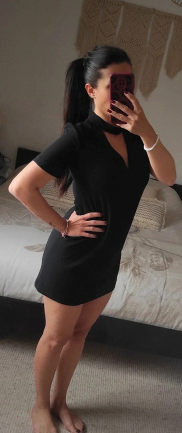 Petite robe noire Zara taille S courte, joli décolleté classe