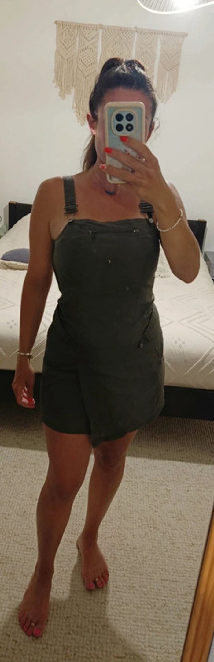 Robe d'été salopette la mode est à vous 38 kaki gris 100% coton tendance