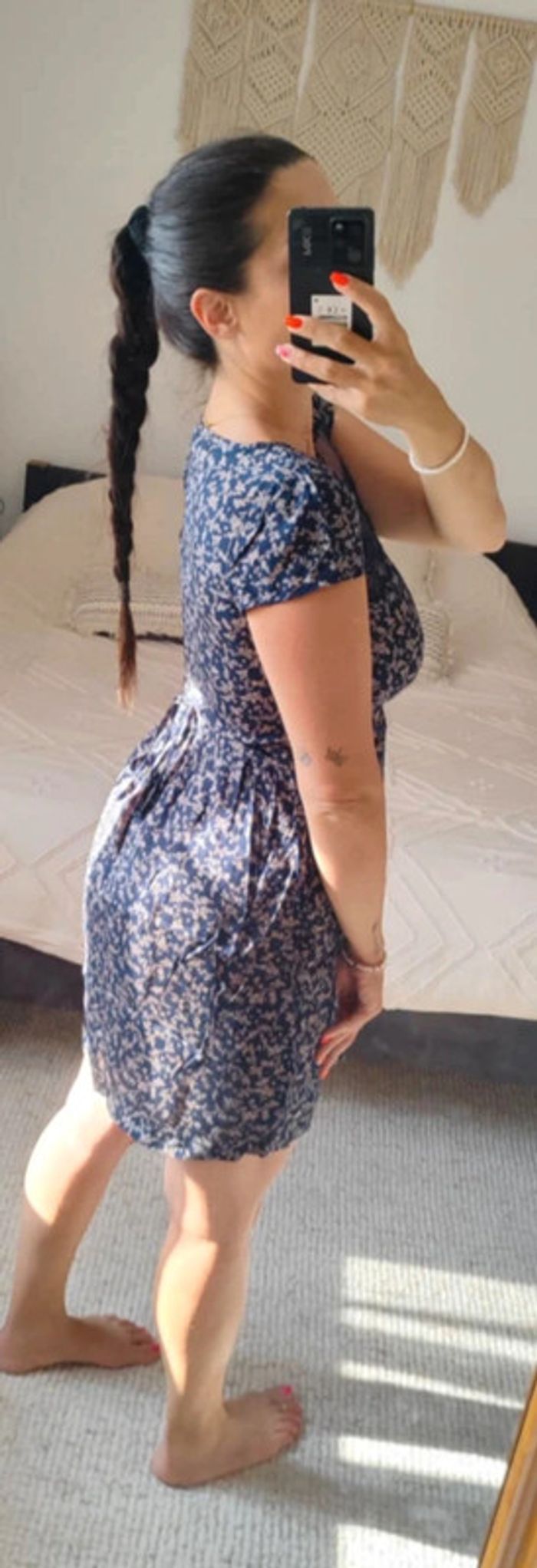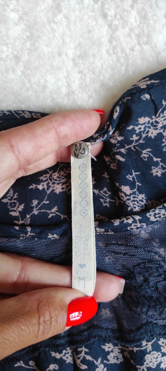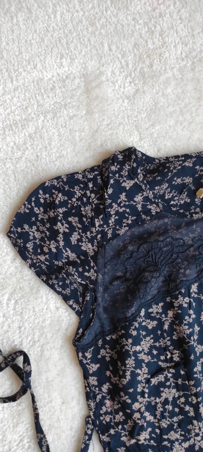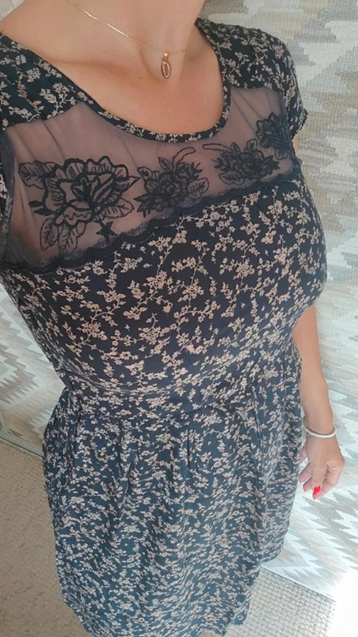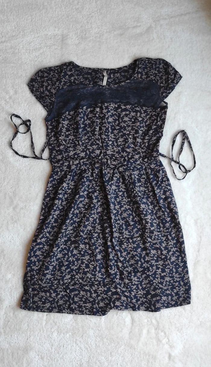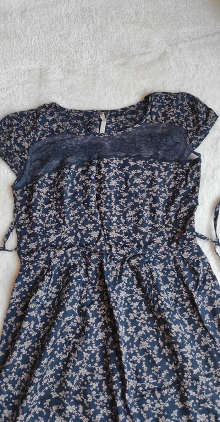 Robe d'été Bonobo M bleu marine avec petites fleurs dentelle poitrine sweet vintage