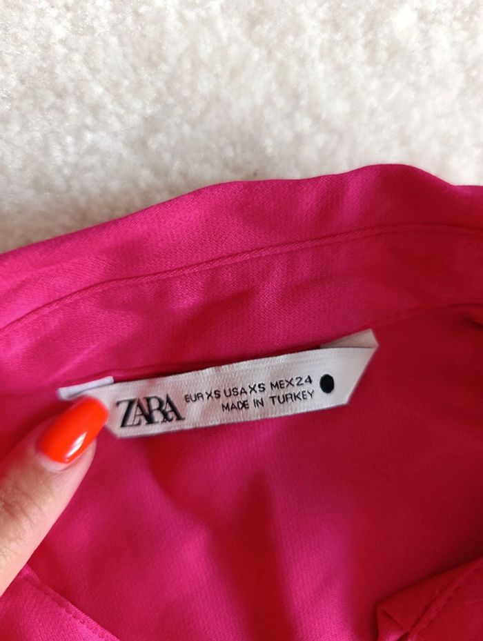 Chemise Zara XS rose fuchsia satiné manches longues légère et fluide tendance - photo numéro 2