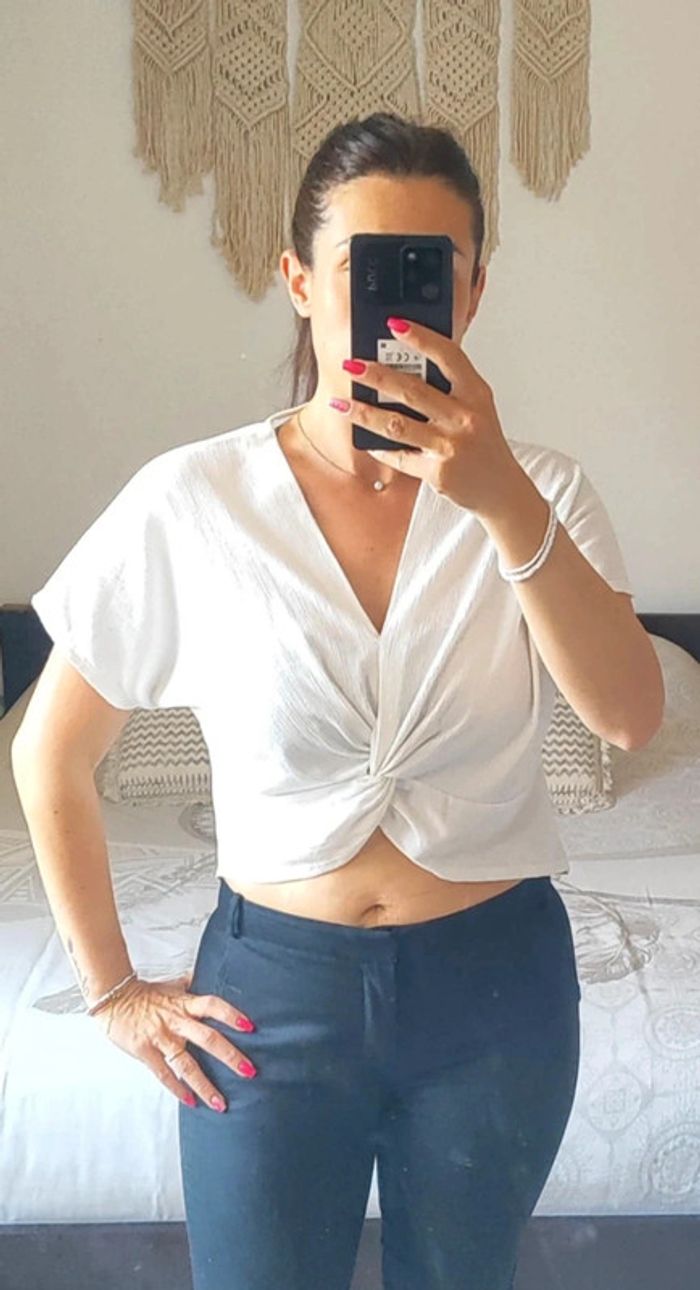 T-shirt croc top blanc Zara collection woman basic S