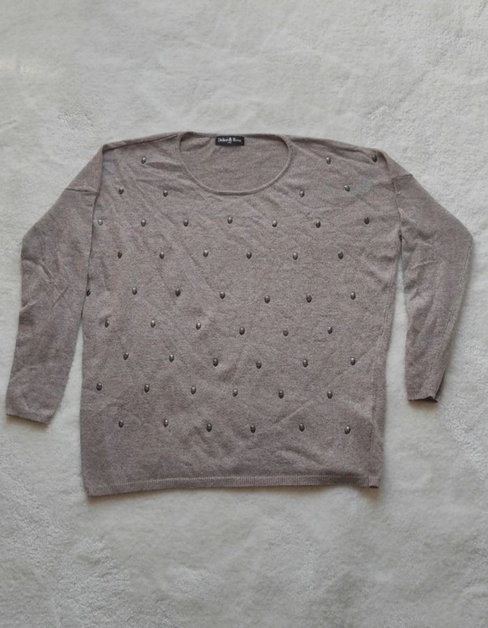 Pull Dolce & Rosa taille unique Laine et cachemire tête de mort beige taupe - photo numéro 2