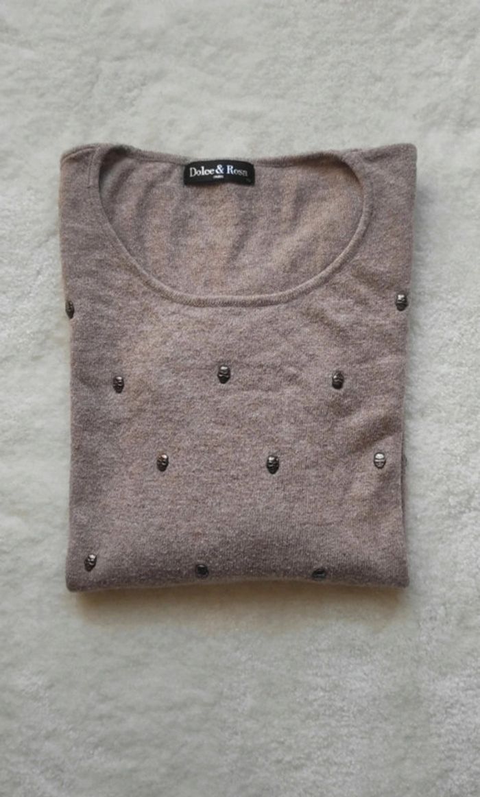 Pull Dolce & Rosa taille unique Laine et cachemire tête de mort beige taupe - photo numéro 6