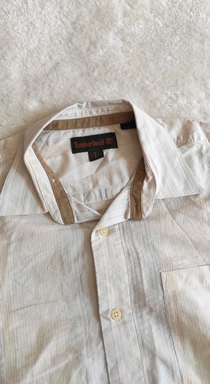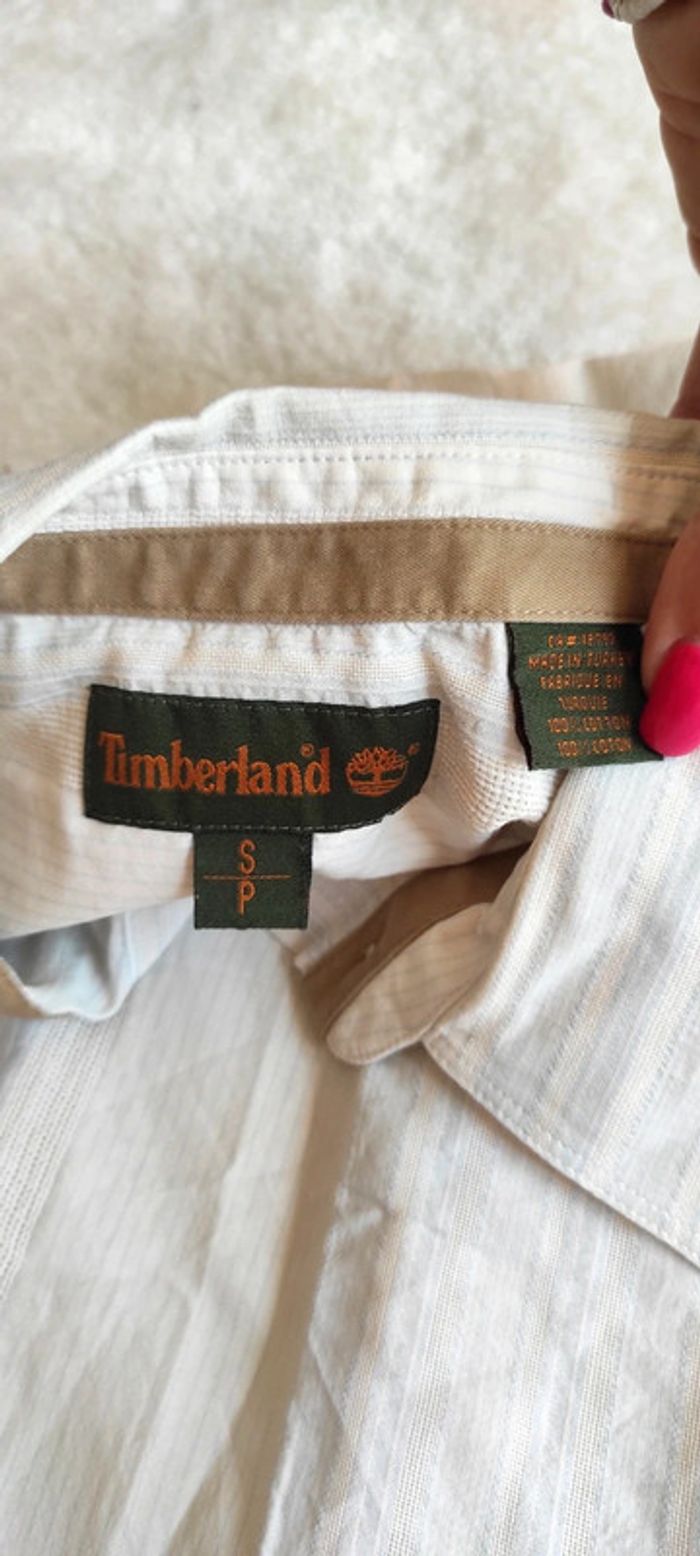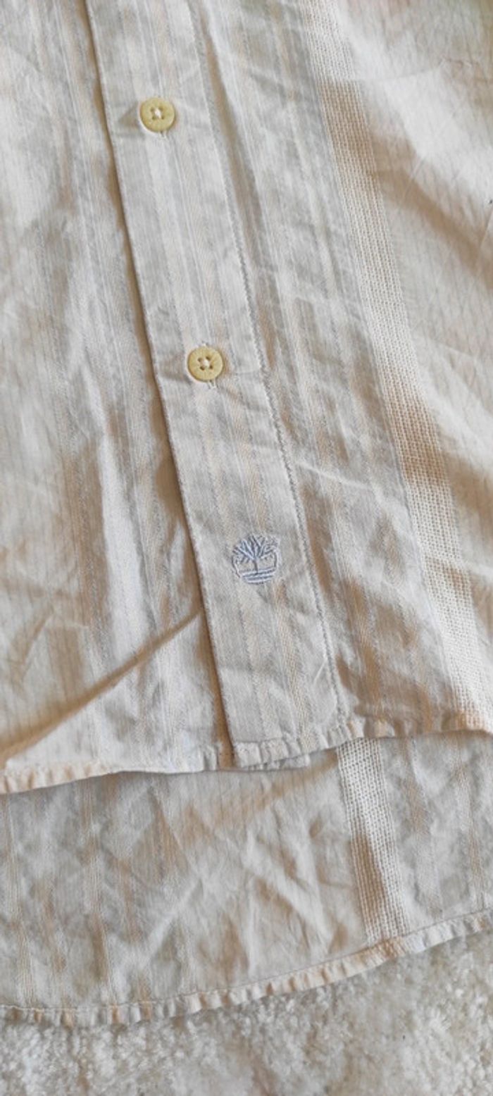 Chemise manches longues Timberland S fines rayures blanc bleu pastel 100% coton légère printemps été - photo numéro 2